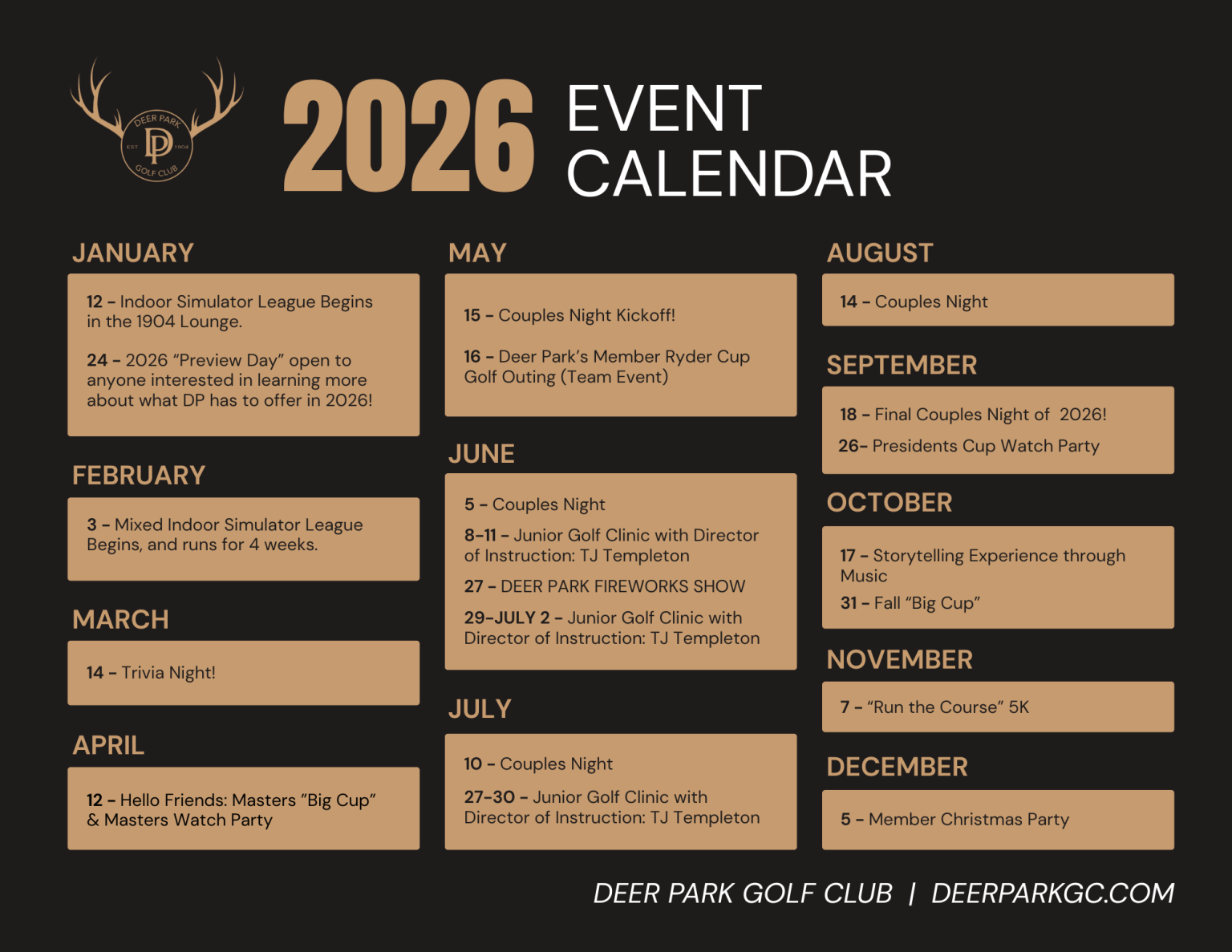 Have an idea for an event you’d like to see us host? Reach out to us at events@deerparkgc.com. We’d love to hear from you!